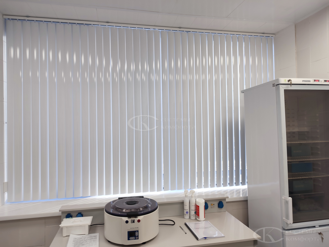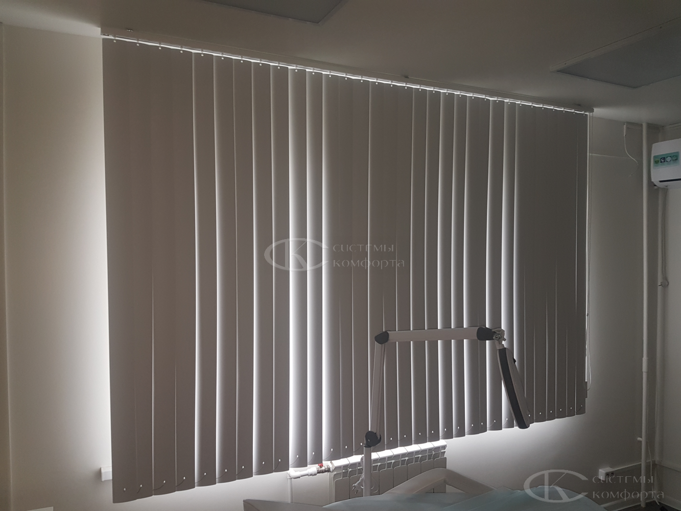 Конструкция жалюзи с алюминиевыми ламелями смотрится легко и изящно. Это практичное решение не только для медицинских и офисных учреждений, но для кухни или любой жилой комнаты.